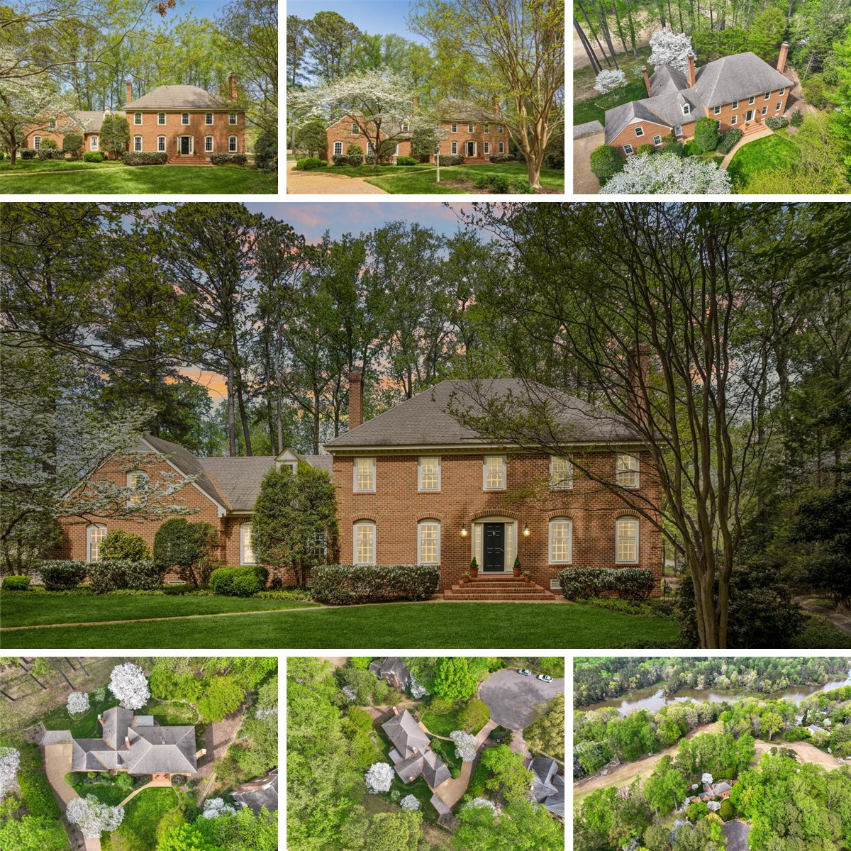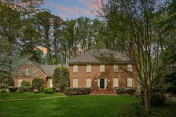 Ronald Curtis custom brick home on a quiet cul-de-sac between the 6th and 7th fairways of the Kingsmill River Course. One-owner residence features random-width hardwoods and custom cherry cabinets from Lancaster County, PA. Kitchen includes a new GE Cafe refrigerator and cabinets with removable stained-glass inserts. The great room offers beamed ceilings and a brick fireplace, plus a formal living room with a second marble fireplace. The floor plan allows a main-level bedroom conversion as the dining room sits adjacent to a full bath and large closet. The study can transition to a dining space; removing built-ins reveals 2ft of extra depth over finished drywall. Upstairs, the primary suite has two walk-in closets. The massive 4th bedroom has dual staircases and attic access for a potential en-suite addition. Garage includes a contained workshop with professional ventilation/exhaust. Updates include a 2024 upstairs HVAC and a 40-year roof. Enjoy Kingsmill security, trails, pools, and tennis.